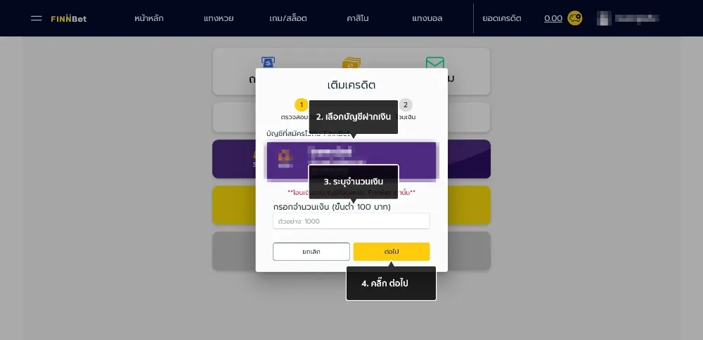การฝากเงินกับ FinnBox สามารถทำได้ดังนี้