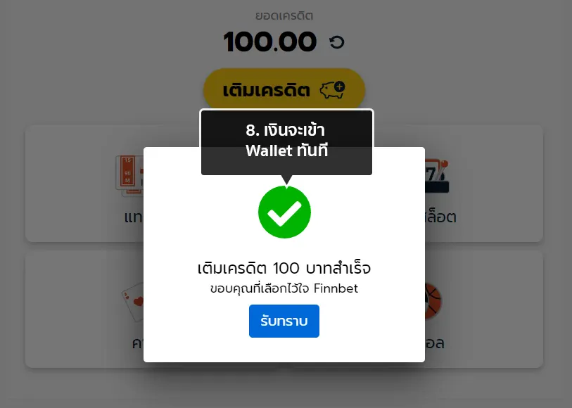 7. กด แจ้งฝากเงิน เพื่อยืนยันการฝากเงิน